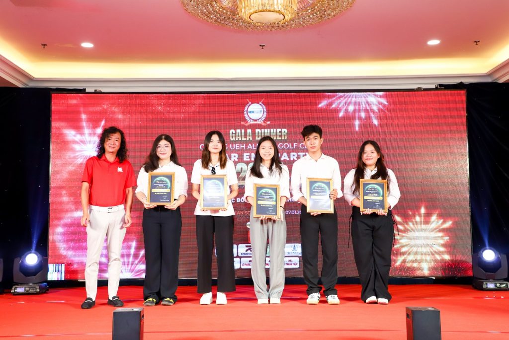 Từ giải đấu UEH Golf Tournament – Swing for Future ngày 01/11/2024, các cựu sinh viên và nhà tài trợ đã đóng góp vào Quỹ học bổng Ươm mầm tài năng UEH. Trong giải golf Year End Party 2025 mừng Xuân Ất Tỵ, CLB Golf UEH Alumni đã trao 10 suất học bổng “Chắp cánh ước mơ”, mỗi suất trị giá 20 triệu đồng dành cho các sinh viên có hoàn cảnh khó khăn nhưng đạt thành tích học tập xuất sắc, cùng 20 suất học bổng “Phát triển tài năng”, mỗi suất trị giá 15 triệu đồng, dành cho những sinh viên có thành tích nổi bật trong học tập. Không chỉ mang ý nghĩa hỗ trợ tài chính, những suất học bổng này còn là nguồn động viên to lớn, giúp các bạn sinh viên vượt qua thử thách và tiến xa hơn trên con đường học vấn.