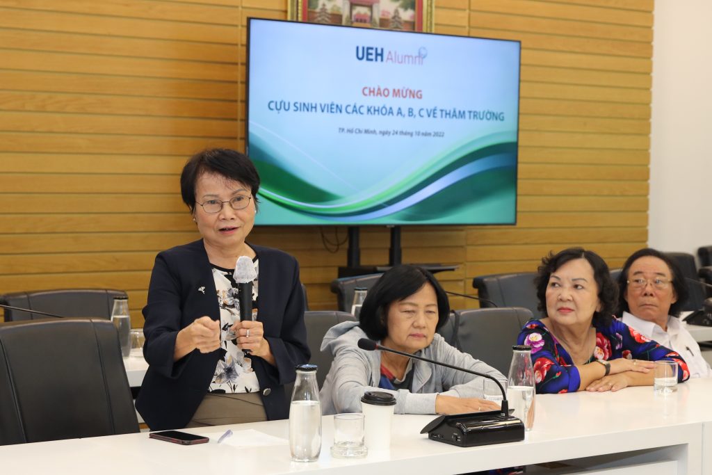 Trưởng thành và lập nghiệp, các thế hệ người học vẫn luôn nhớ mãi ký ức về ngôi nhà chung UEH với những cảm xúc và những kỷ niệm thật đẹp. Các cựu sinh viên bồi hồi chia sẻ sự xúc động và niềm tự hào khi được trở về thăm trường và chứng kiến những đổi mới của UEH sau hơn 46 năm hình thành và phát triển. Đại diện cho Cựu sinh viên khóa A, B, C, Thầy Hồ Đức Hùng gửi lời cảm ơn chân thành đến Ban lãnh đạo nhà trường đã tạo điều kiện cho các cựu sinh viên có buổi họp mặt đầy ý nghĩa và ấm áp.