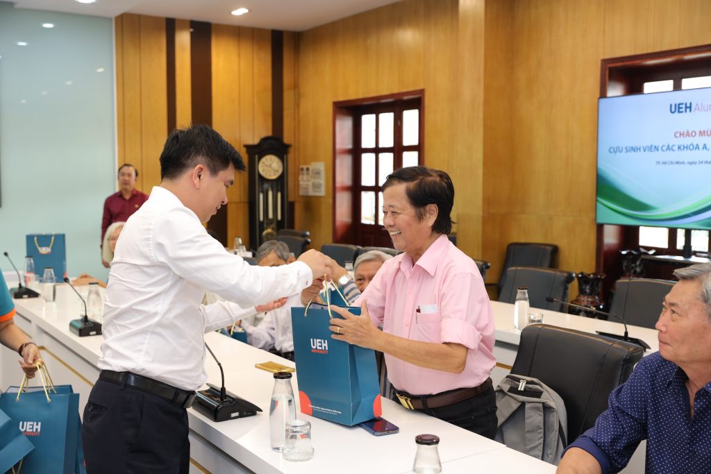 Đến tham dự buổi họp mặt, về phía lãnh đạo UEH có GS.TS. Nguyễn Đông Phong - Chủ tịch Hội đồng trường, Chủ tịch UEH Alumni; GS.TS. Sử Đình Thành - Hiệu trưởng UEH; TS. Bùi Quang Hùng - Phó Hiệu trưởng UEH; TS. Trần Thế Hoàng - Phó Chủ tịch thường trực UEH Alumni; Ban Điều hành UEH Alumni và hơn 20 cựu sinh viên các khóa A, B, C cùng về họp mặt.