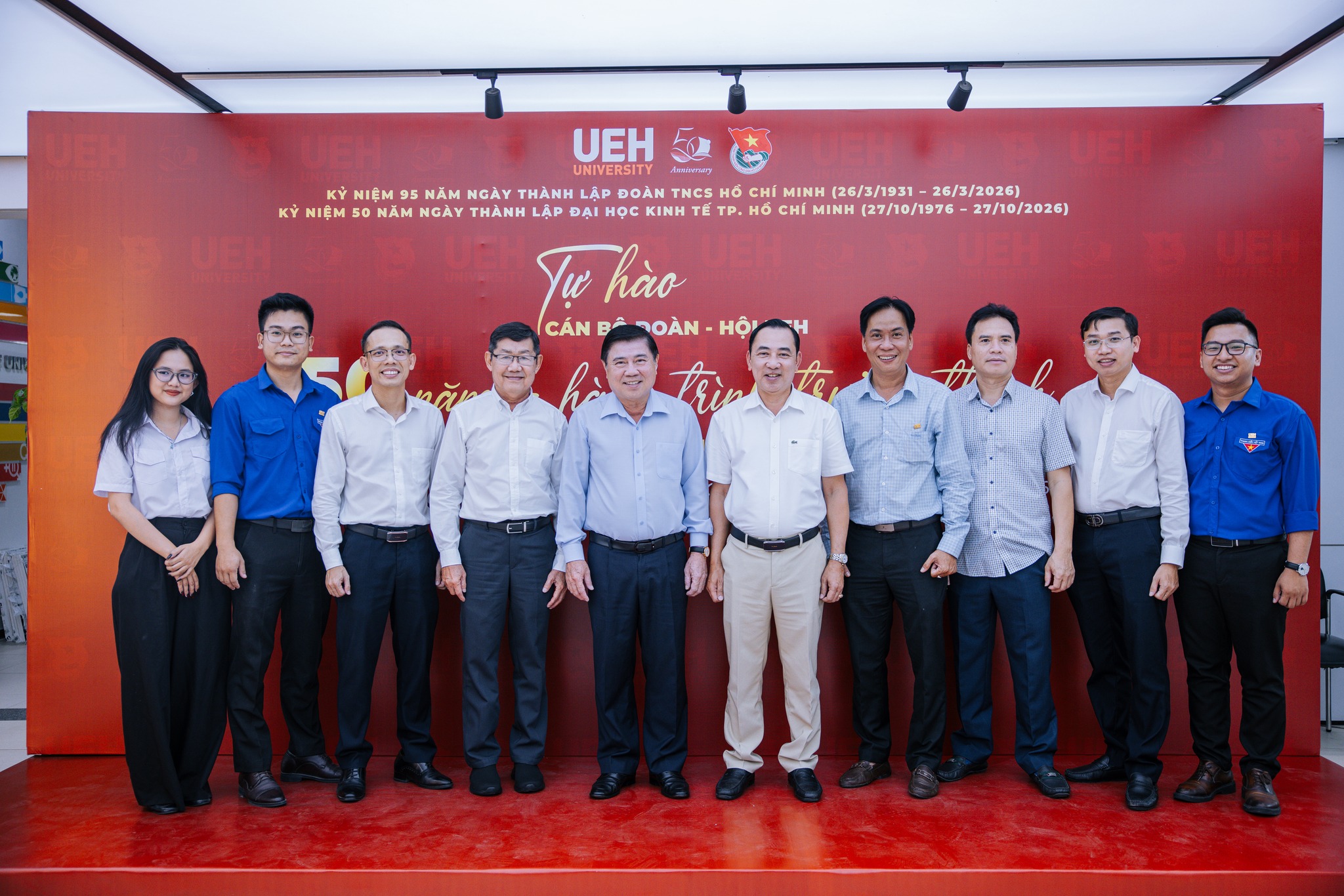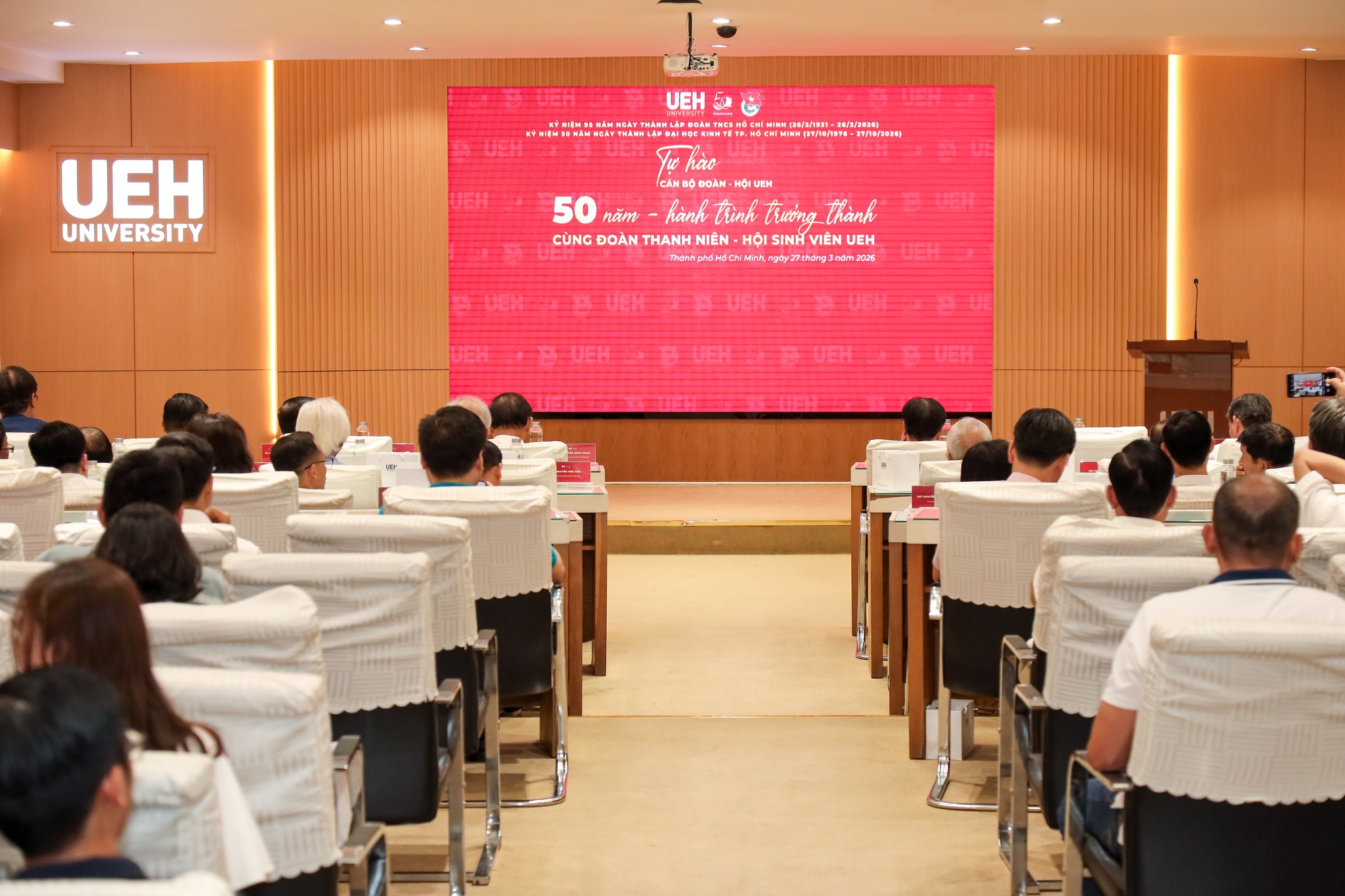 Hòa chung trong không khí kỷ niệm 95 năm ngày thành lập Đoàn TNCS Hồ Chí Minh (26/3/1931 - 26/3/2026), chiều ngày 27/3/2026 tại cơ sở A UEH - Nguyễn Đình Chiểu, Đoàn Thanh niên Đại học Kinh tế Thành phố Hồ Chí Minh (UEH) đã phối hợp với Ban Liên lạc Cựu cán bộ Đoàn - Hội UEH tổ chức Chương trình họp mặt truyền thống Cán bộ Đoàn - Hội UEH các thời kỳ.