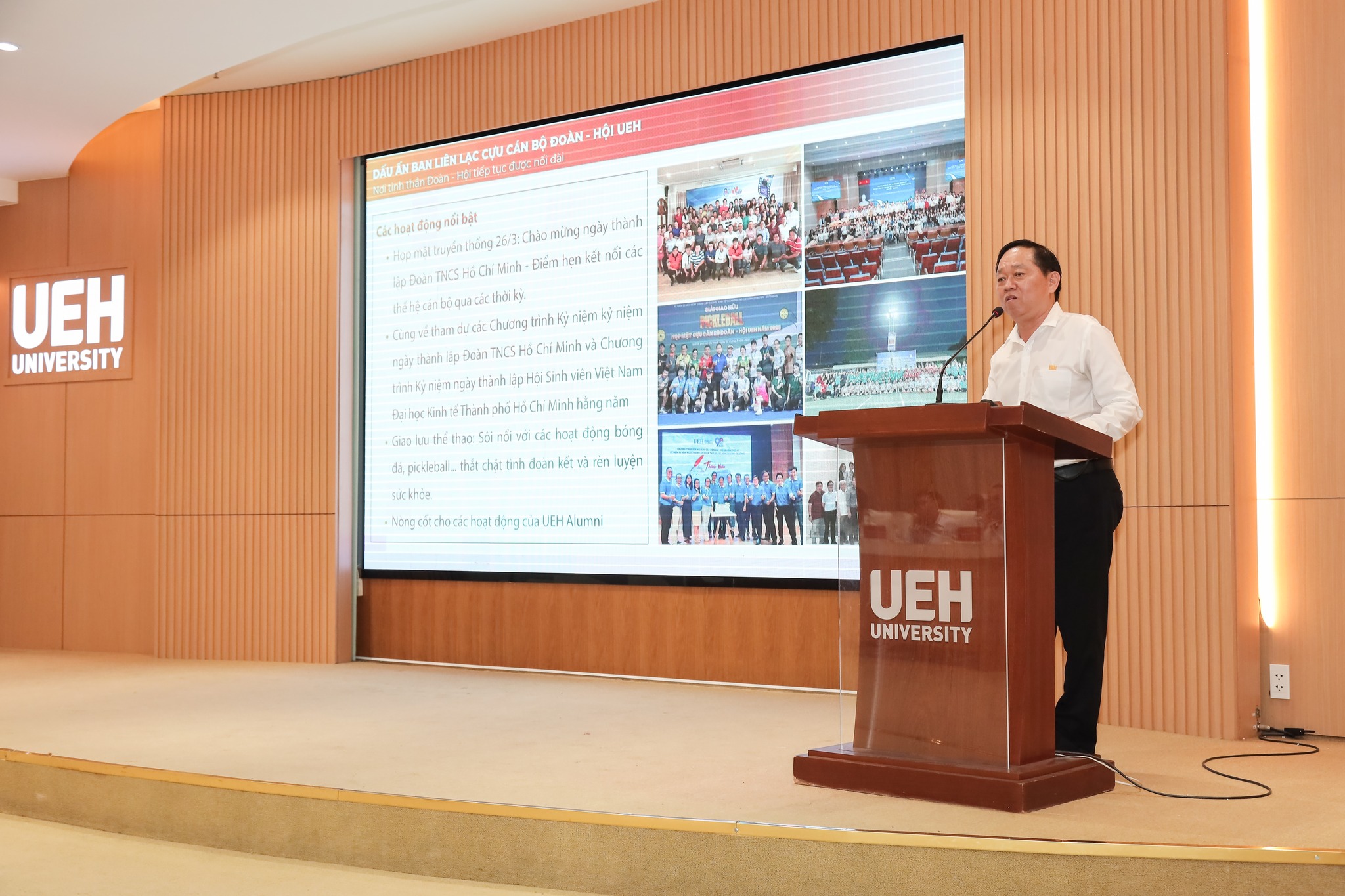 Chương trình đồng thời giới thiệu các hoạt động trọng tâm nhằm kết nối cựu người học, cựu cán bộ Đoàn - Hội trong chuỗi hoạt động chào mừng Kỷ niệm 50 năm thành lập Đại học Kinh tế Thành phố Hồ Chí Minh. Đây cũng là dịp để lan tỏa tinh thần đồng hành, chung tay đóng góp của các thế hệ, qua đó tiếp tục vun đắp các giá trị tốt đẹp và tăng cường sự gắn kết trong cộng đồng UEH.