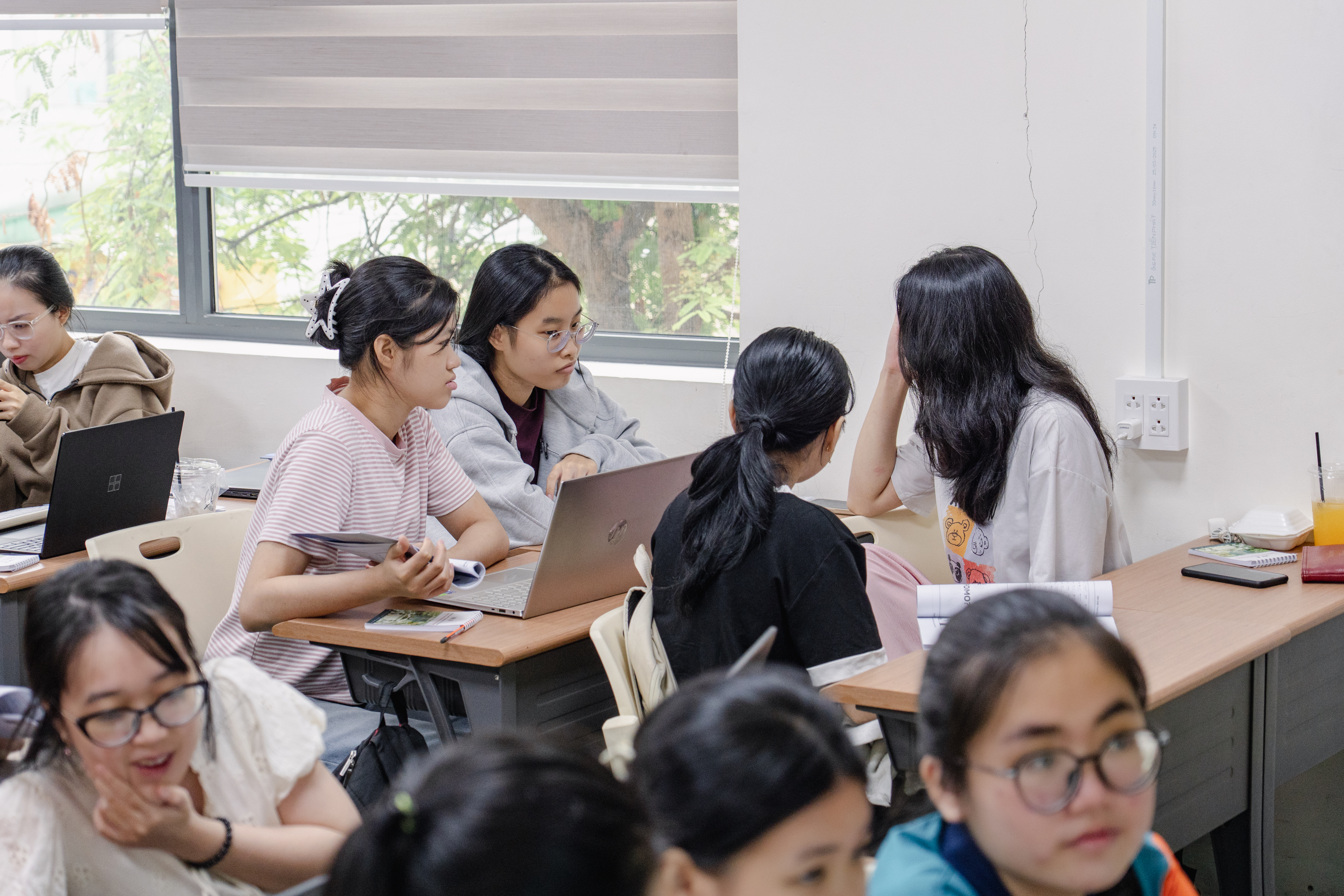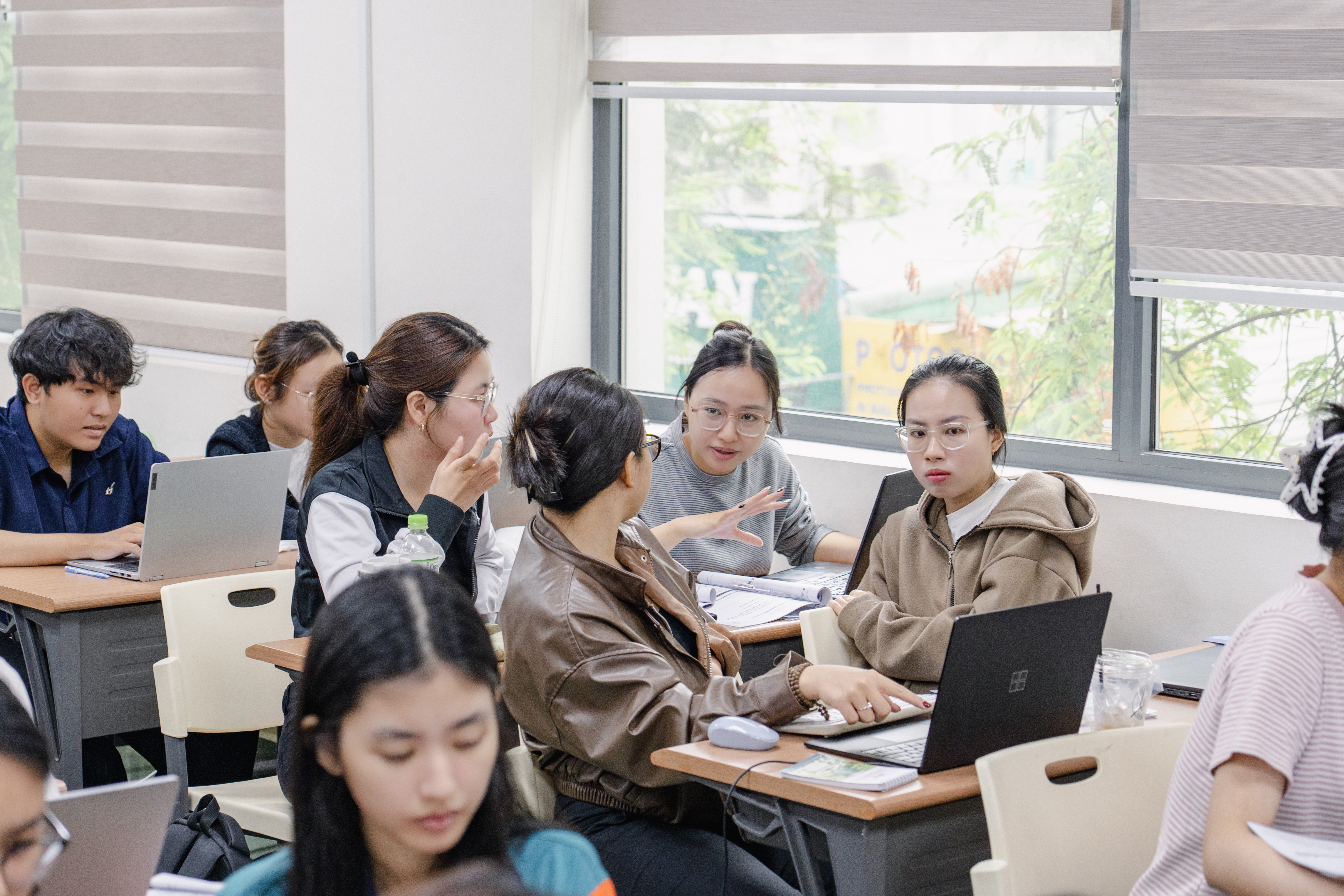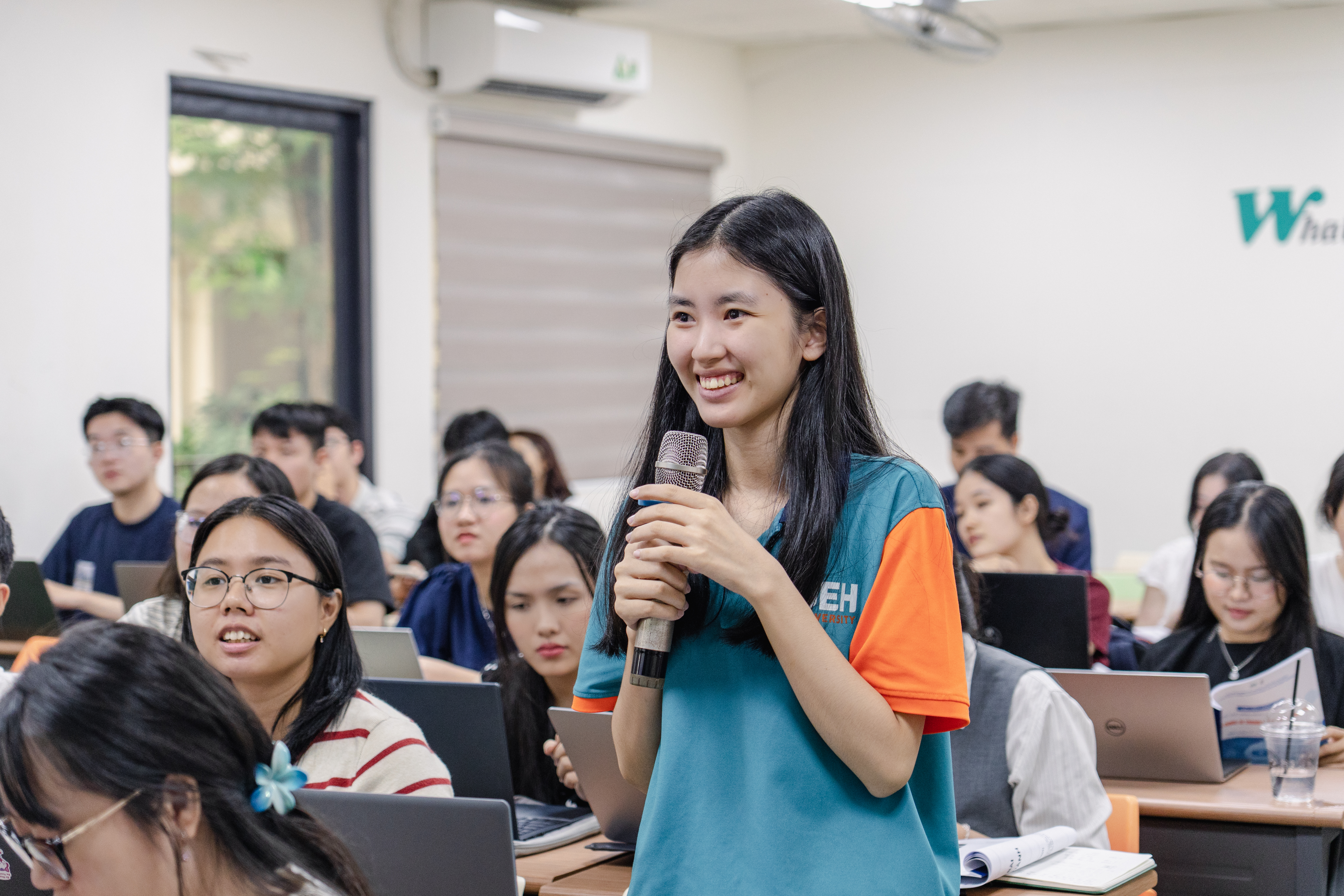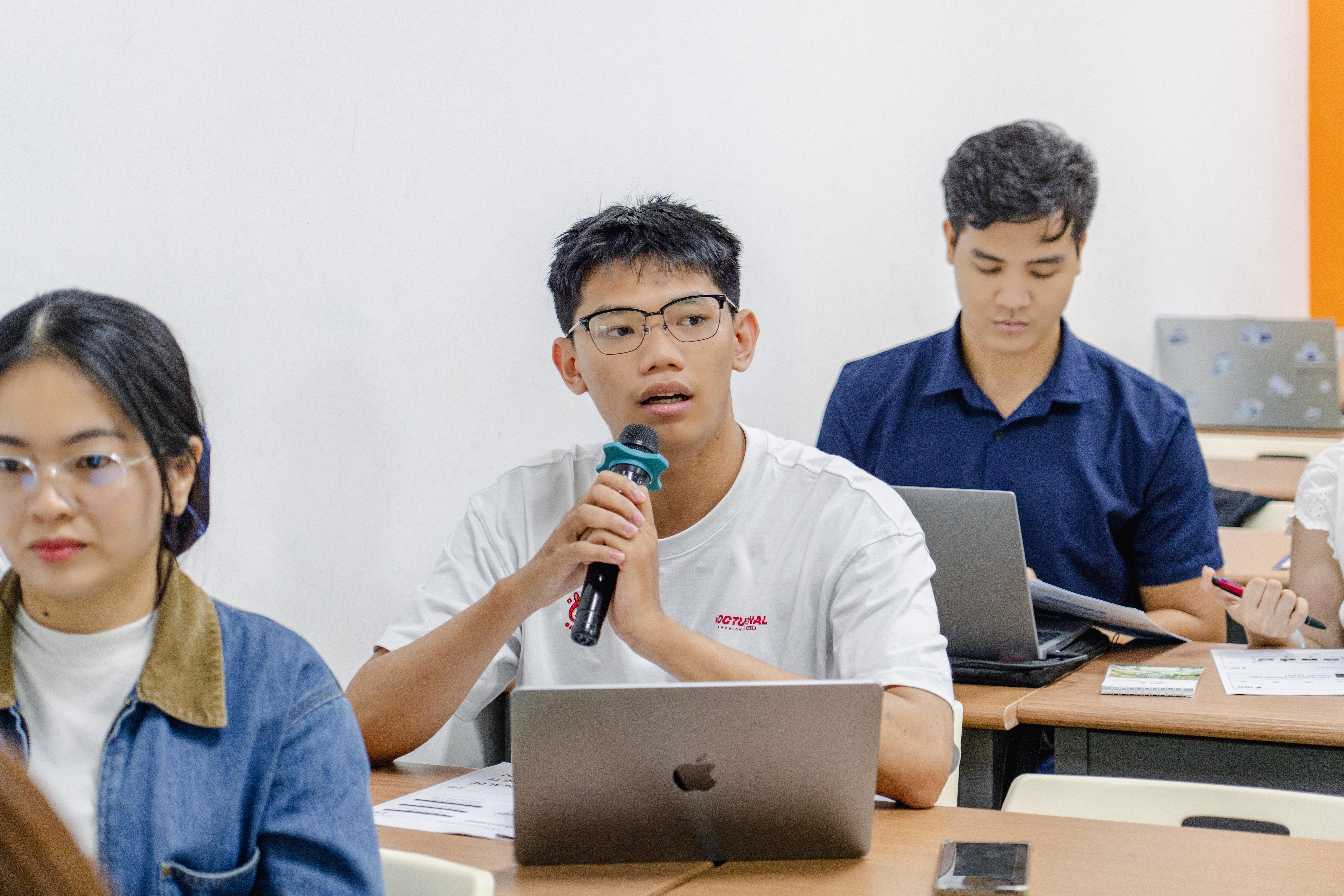 Bên cạnh phần chia sẻ, các tân cử nhân còn chủ động thảo luận, chia sẻ góc nhìn và kinh nghiệm sử dụng AI của bản thân ngay tại lớp học. Sự tương tác hai chiều này góp phần tạo nên một môi trường học tập cởi mở, nơi mỗi người đều có thể đóng góp, học hỏi và từng bước hoàn thiện hiểu biết của mình về công nghệ AI