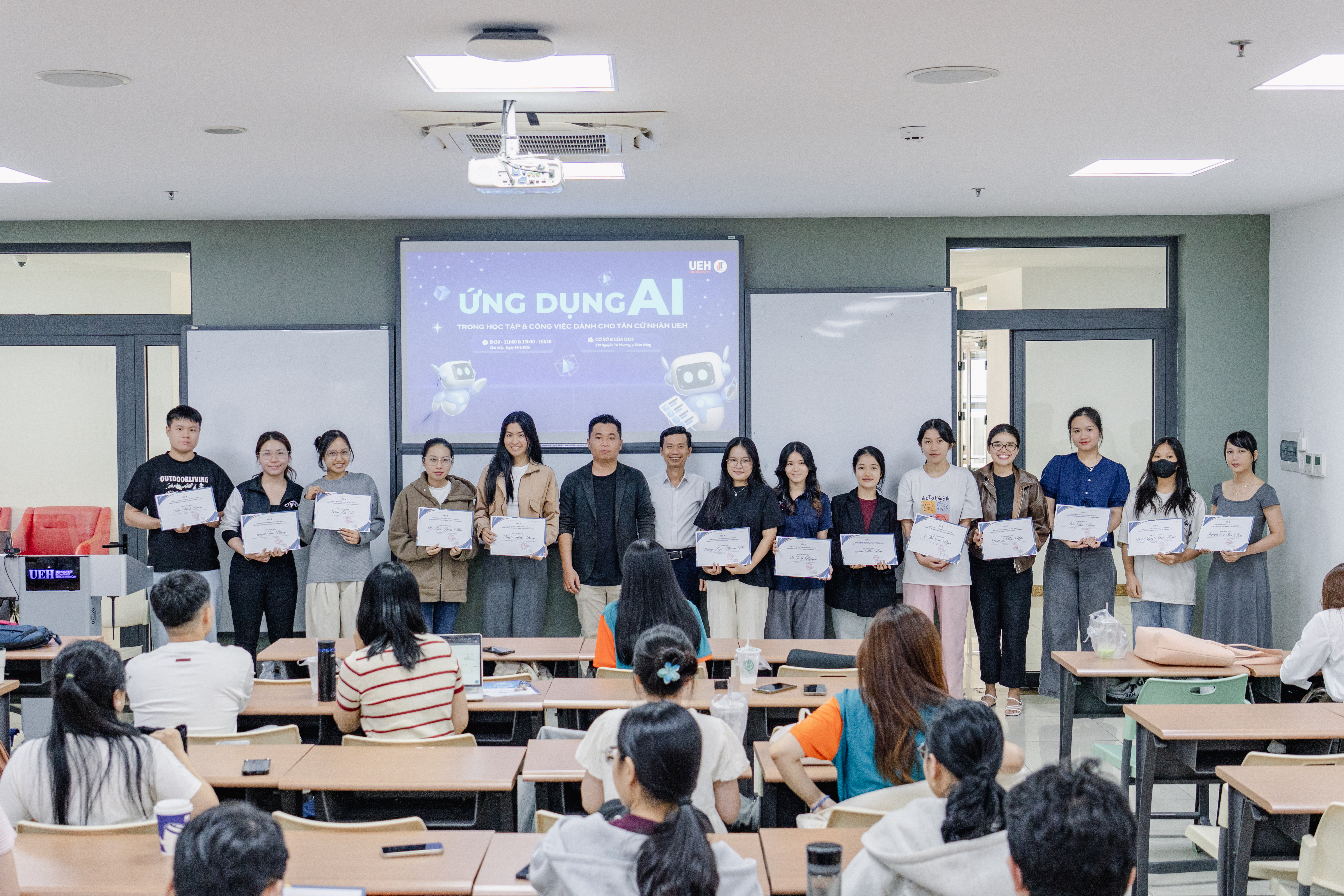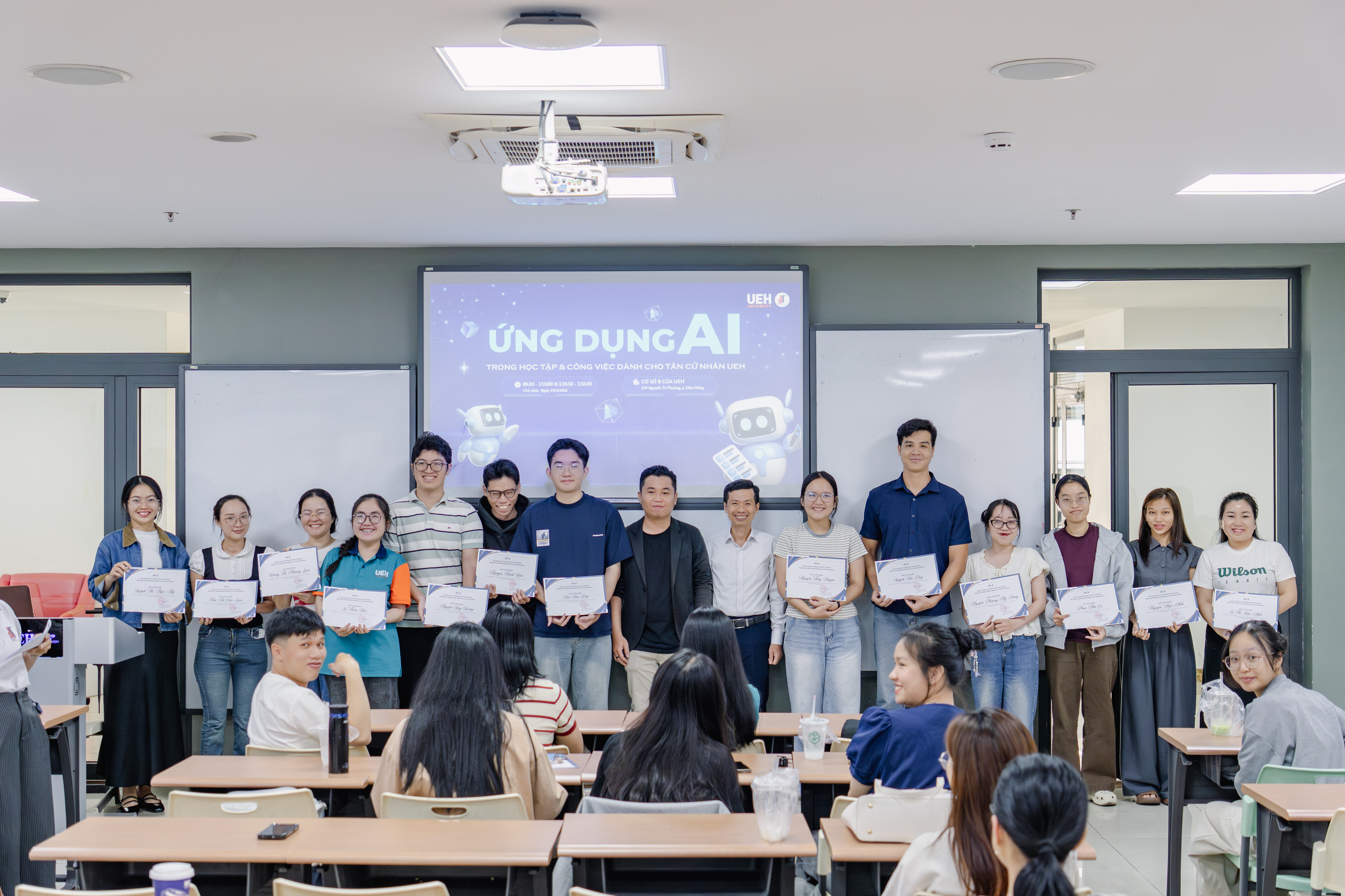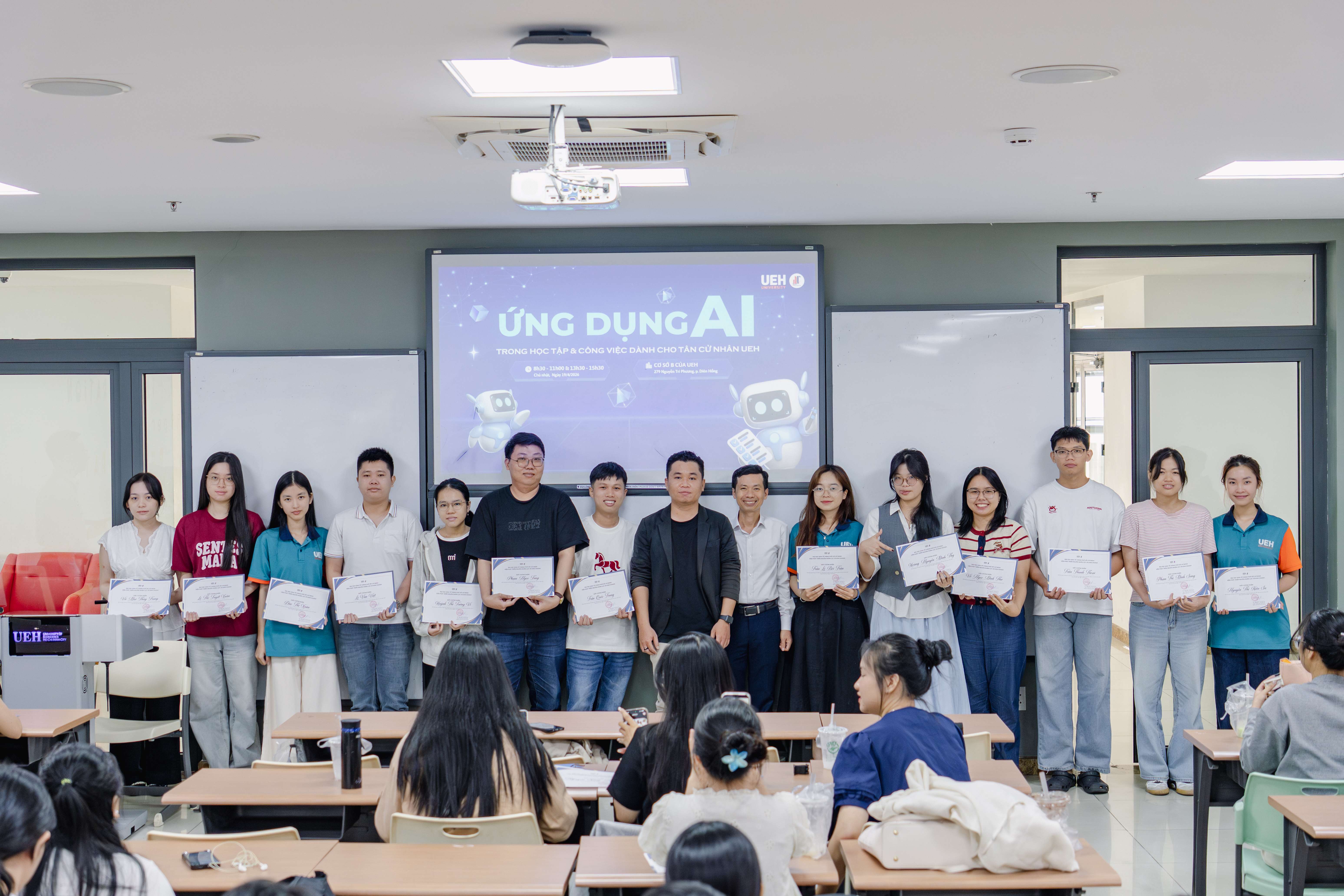 Lớp học “Ứng dụng AI trong học tập & công việc dành cho tân cử nhân UEH” khép lại với nhiều giá trị thiết thực, góp phần giúp các tân cử nhân hiểu đúng hơn về AI, từng bước ứng dụng công nghệ vào thực tế và tự tin hơn trên hành trình phát triển nghề nghiệp trong kỷ nguyên số.
