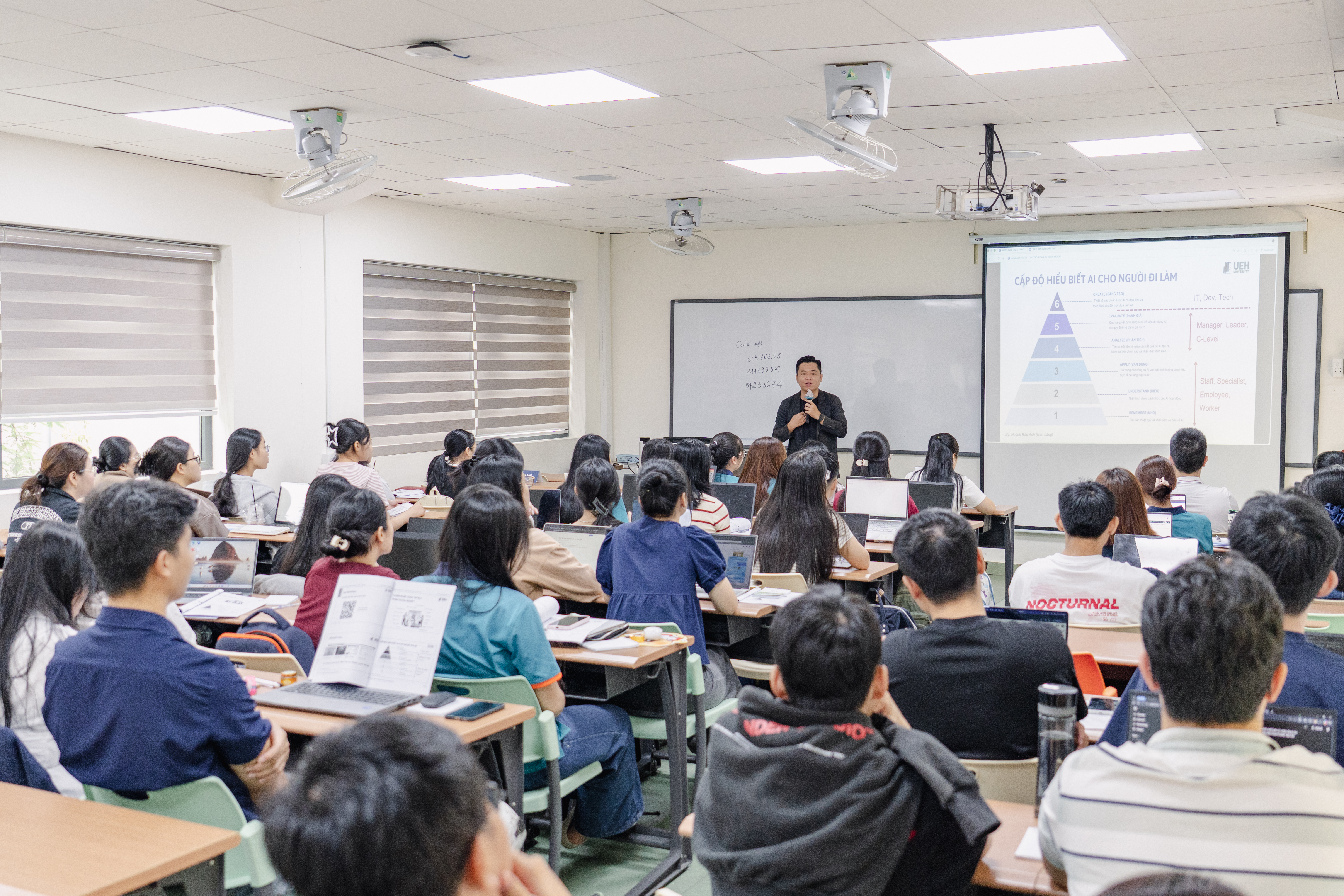 Ngày 19/4/2026, UEH Alumni phối hợp cùng Viện Phát triển Nguồn nhân lực và Kinh doanh UEH đã tổ chức lớp học “Ứng dụng AI trong học tập & công việc dành cho tân cử nhân UEH”, thu hút hơn 60 tân cử nhân tham gia với mong muốn nâng cao năng lực thích ứng trong bối cảnh công nghệ ngày càng phát triển mạnh mẽ.