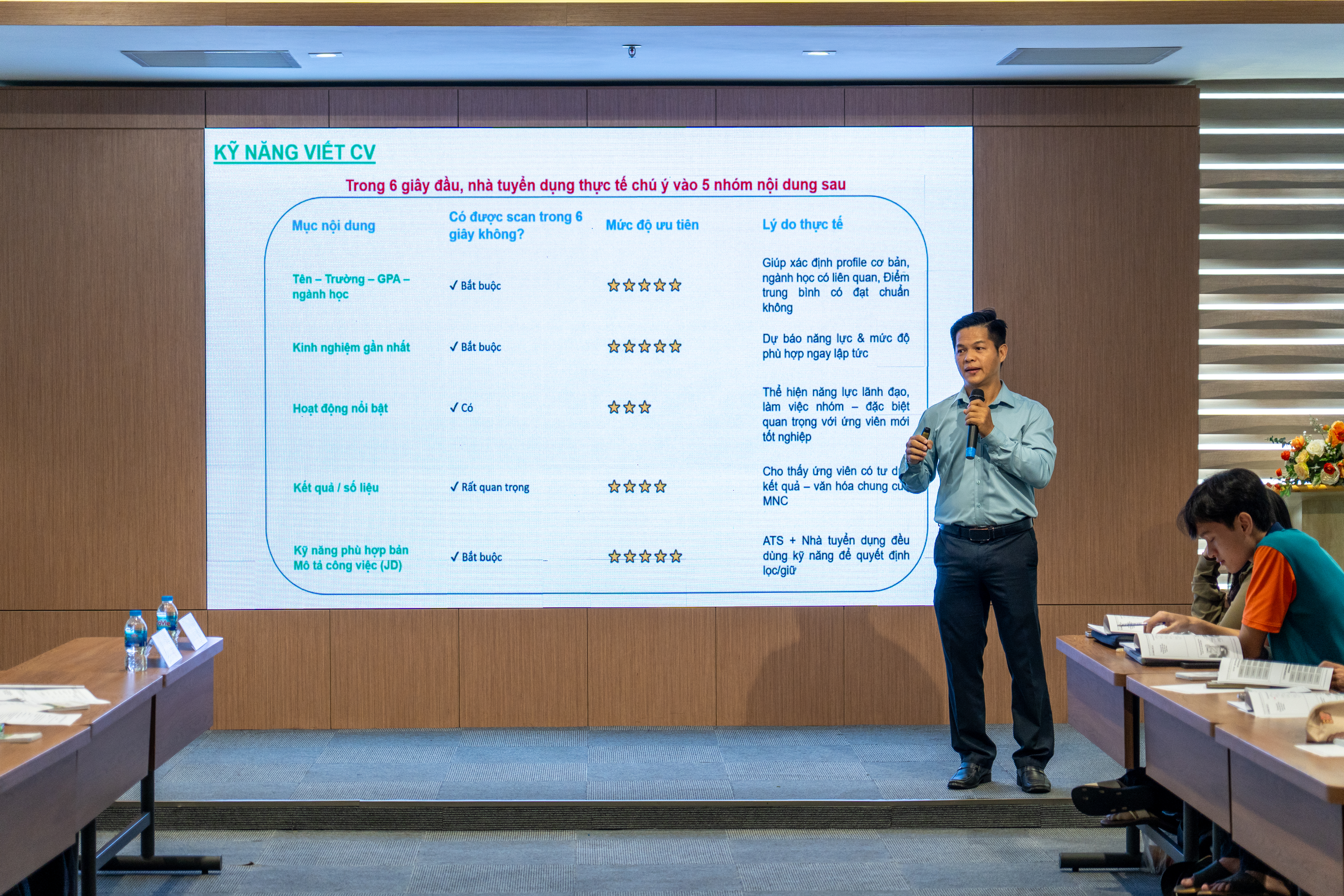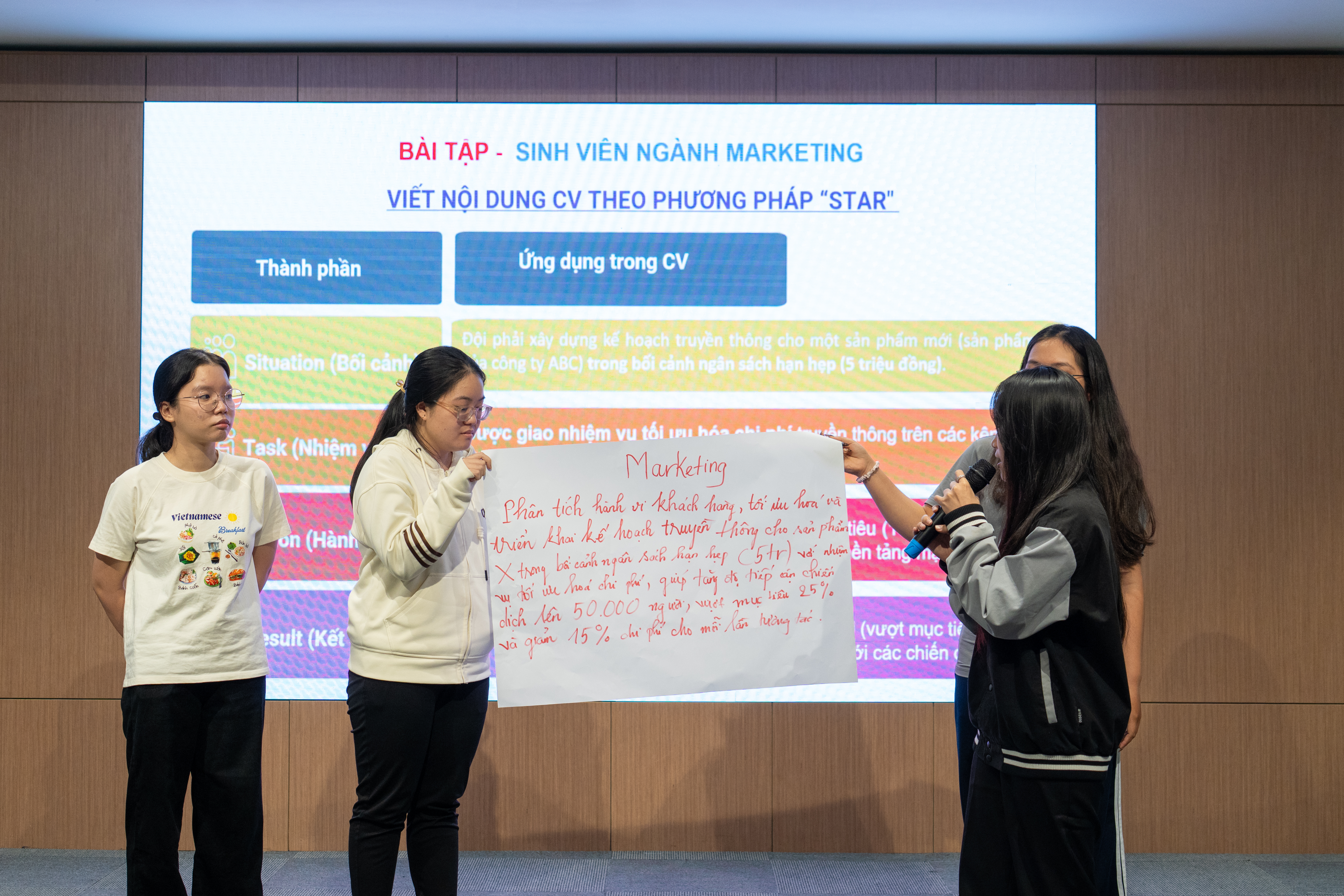 Lớp học trang bị kỹ năng CV và phỏng vấn, giúp tân cử nhân tự tin nắm bắt cơ hội nghề nghiệp.