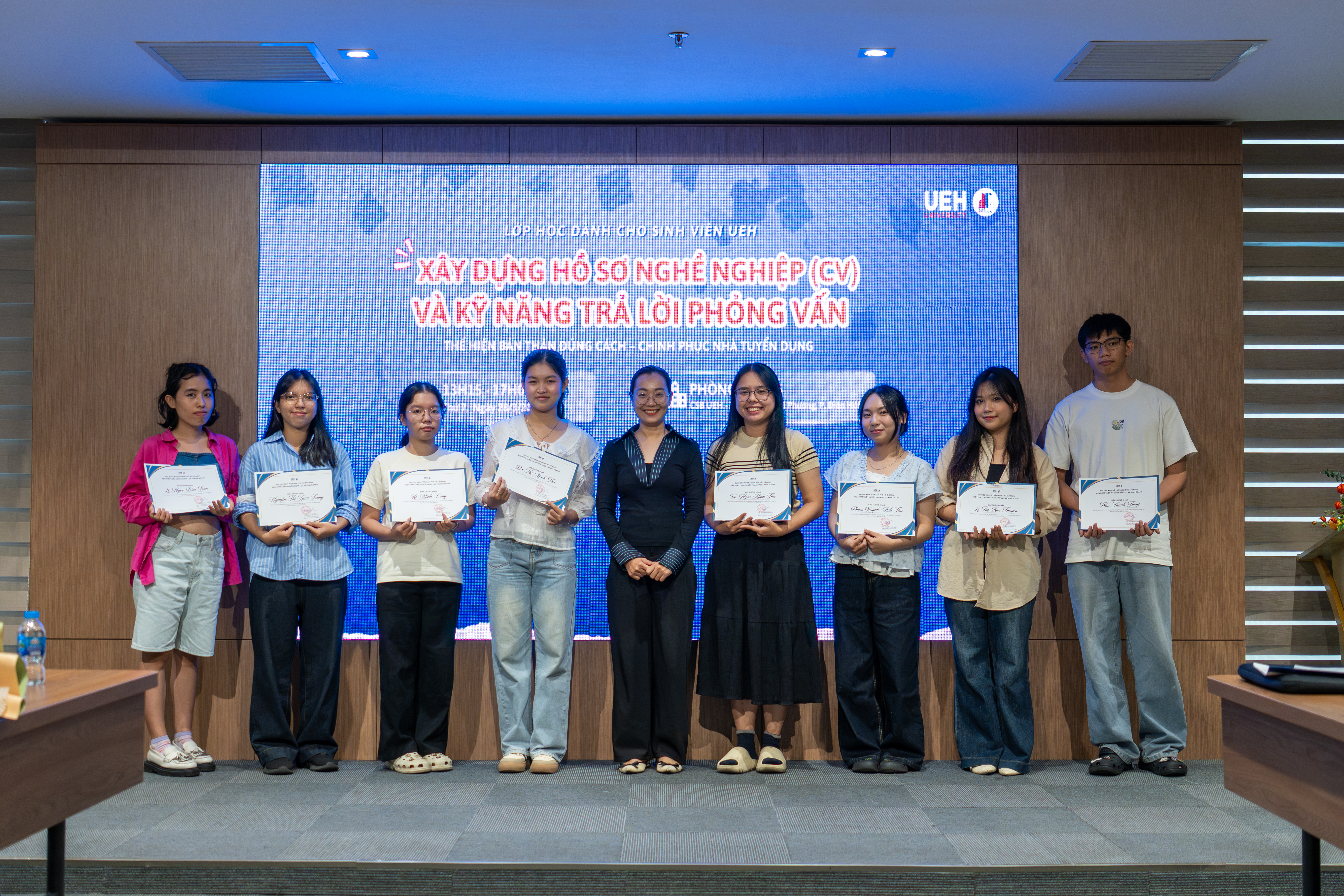 Ngày 28/3/2026, UEH Alumni phối hợp cùng Viện Phát triển Nguồn nhân lực và Kinh doanh UEH đã tổ chức lớp học “Xây dựng hồ sơ nghề nghiệp & Kỹ năng trả lời phỏng vấn” dành cho các tân cử nhân - những thành viên mới của cộng đồng UEH Alumni.