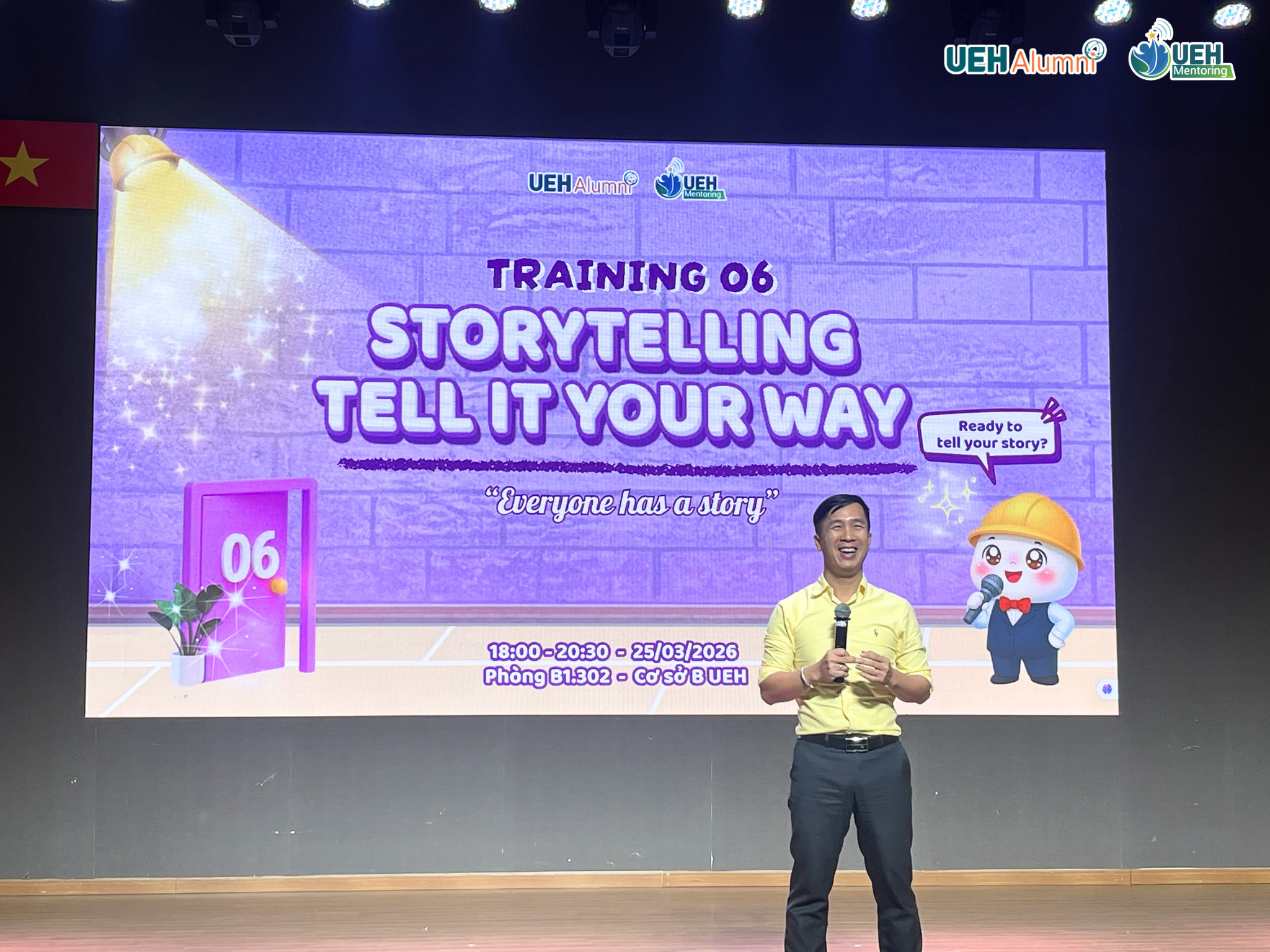 Tối ngày 25/03/2026 vừa qua, buổi Training 06 chủ đề “Storytelling – Tell it your way!” với sự dẫn dắt của Trainer Trần Hùng Thiện do CLB UEH Mentoring tổ chức đã diễn ra thành công rực rỡ, thu hút sự tham gia đông đảo của hơn 200 bạn sinh viên và Mentee.