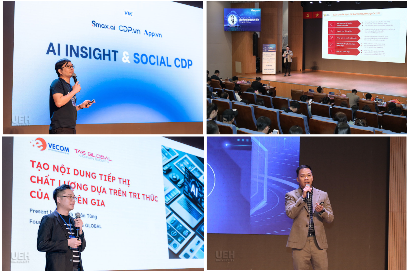 Với vai trò là đơn vị phối hợp tổ chức tại đầu cầu TP.HCM, UEH đã đồng hành cùng VECOM mang đến cơ hội để sinh viên, giảng viên, chuyên gia và cộng đồng doanh nghiệp tiếp cận xu hướng mới, nâng cao năng lực cạnh tranh và phát triển bền vững trong kỷ nguyên số.