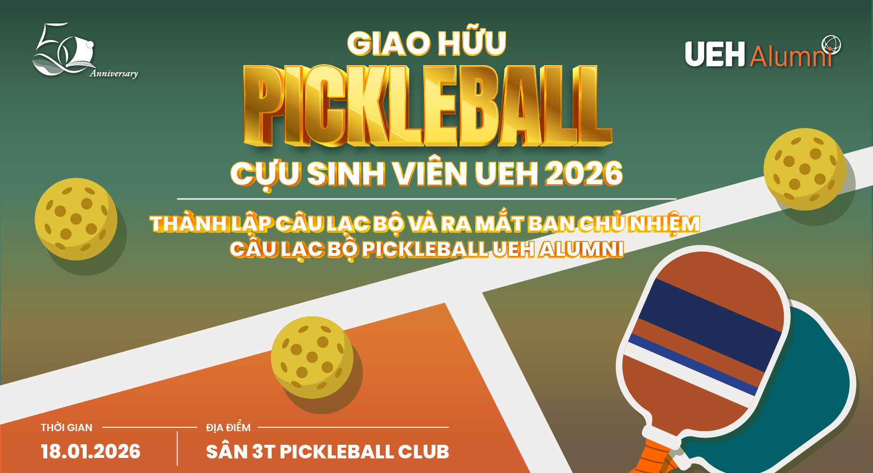 Nhân dịp chào mừng Tết Nguyên đán Bính Ngọ 2026, UEH Alumni tổ chức Giải giao lưu Pickleball “Ready for Homecoming 2026” - Thành lập câu lạc bộ và ra mắt Ban Chủ nhiệm câu lạc bộ Pickleball UEH Alumni nhằm tạo không khí giao lưu thể thao đầu xuân sôi nổi, lành mạnh và tăng cường kết nối cộng đồng cựu sinh viên UEH.